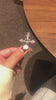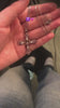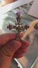 Des cristaux roses, violets et transparents sont sertis à la main selon différents angles, ce qui donne au pendentif des reflets changeants selon la lumière. Les photos ne lui rendent pas justice.
